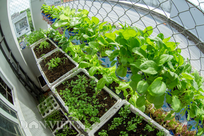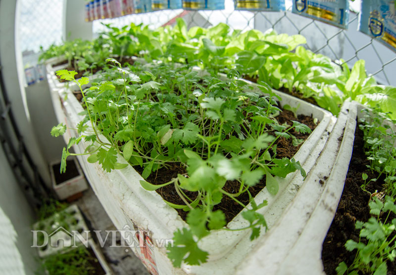 Không phụ công chăm sóc của ông bố một con, những hộp, thùng trồng rau của anh Biển xanh non mơn mởn, "rau trồng tại nhà ăn rất đậm đà, ngon hơn rau chợ rất nhiều, có lẽ vì không dùng phân bón hoá học hay thuốc trừ sâu", anh Biển kể.