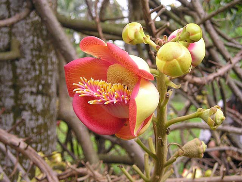 Sa la từng được coi là cây “thiêng”, thường trồng ở các vườn chùa, nhất là chùa Khmer ở Trà Vinh, Cần Thơ, Sóc Trăng… Theo Phật học từ điển, Sa la, hay Sa la song thọ, còn gọi là Ta la (tiếng Phạn: Sala), có nghĩa là “kiên cố”. Theo sử sách, cách nay 2.556 năm (theo Phật lịch), Thái tử Tất Đạt Đa đã sản sinh ở gốc cây Sa la, trong vườn Lâm Tì Ni, và khi thành Phật, ngài cũng nhập diệt giữa 2 cây Sa la tại Câu Thi Na. Từ đó, cây Sa la được Phật tử coi là một loài cây cao quý. Hoa Sa la mọc ra từ thân cây chứ không phải từ cành. Hoa thường trổ suốt từ tháng 3 đến tháng 9 âm lịch hàng năm. Cuống hoa dài, cánh hoa to, màu đỏ hồng tươi tắn và mùi thơm thoang thoảng, nhẹ nhàng. Hoa thường nở vào buổi sáng, đến trưa thì tàn. Theo quan niệm của các nhà sư, hoa này tàn thì hoa khác tiếp tục nở nhằm biểu hiện một triết lý vô thường và giải thoát. Cũng theo truyền thống của Phật tử Nam tông, họ thường dùng hoa Sa la làm biểu tượng để trang trí cho ngày Phật đản. Chính vì ý nghĩa và giá trị nói trên mà nhiều nghệ nhân cây cảnh Việt Nam đã coi Sa la là loại cây quý hiếm.